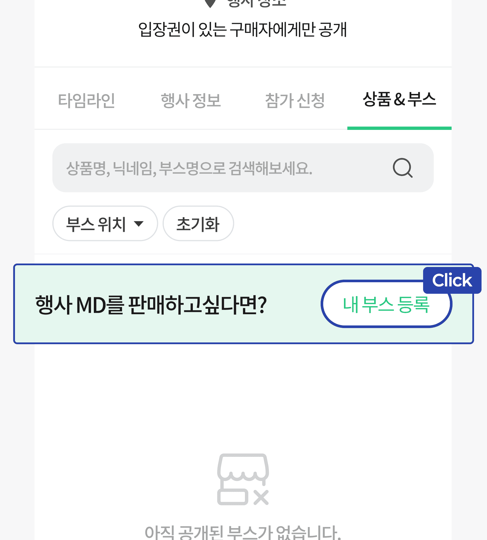 주최자 부스는 자동으로 뱃지가 부착되어 목록 최상단에 위치하며, 일반 부스와 구분됩니다.