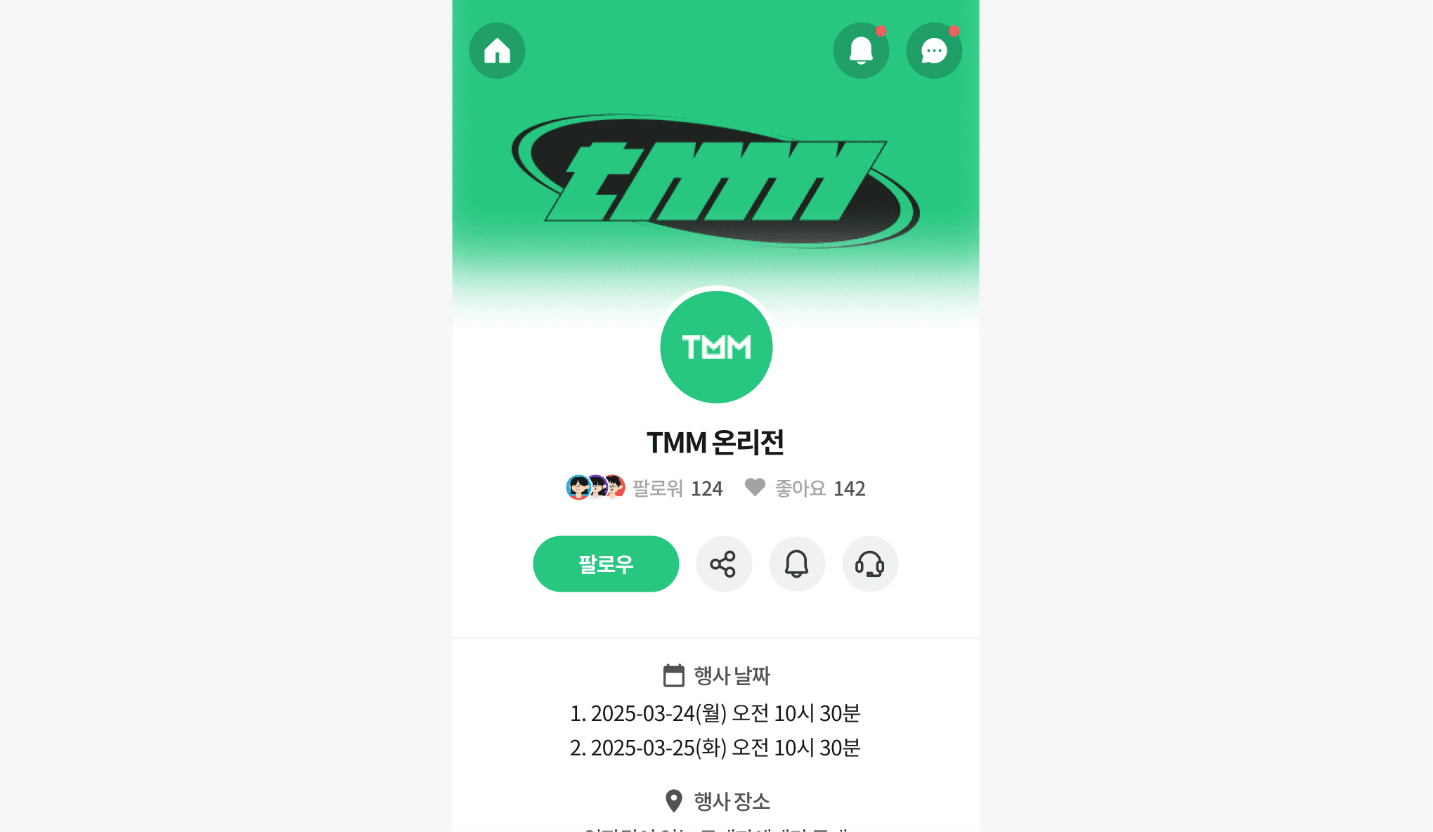 부스 신청 상품 또는 MY구매에 생성된 주최자 부스를 '수정하기' 기능으로 변경할 경우 오류가 발생할 수 있습니다. 주최자 부스 등록 후에는 '수정하기'를 사용하지 마시고, 변경이 필요한 경우 TMM으로 문의해주세요.