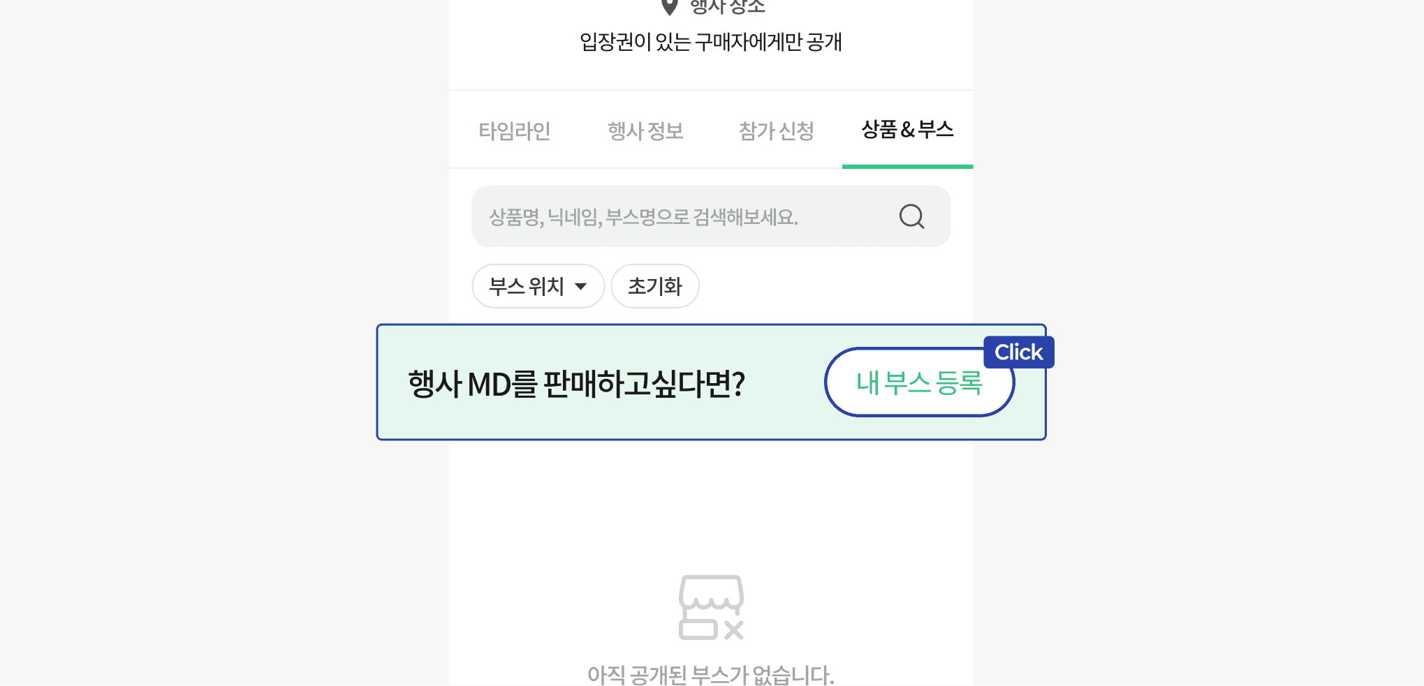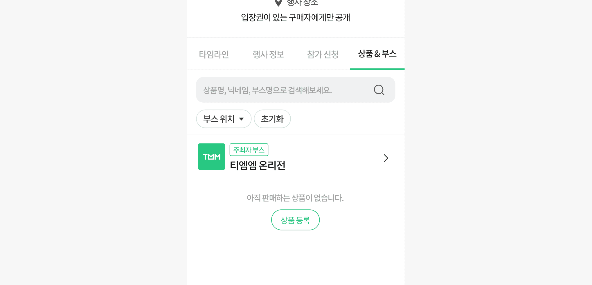 주최자 부스가 생성되면, 해당 부스에 판매하고자 하는 상품을 자유롭게 업로드할 수 있습니다.