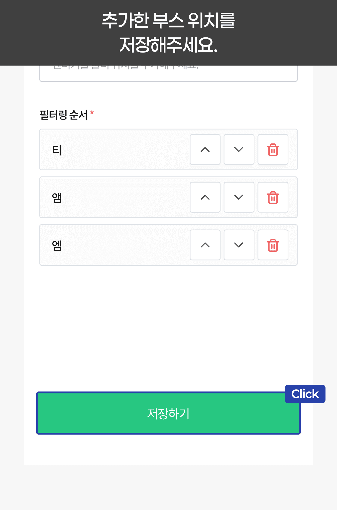 * 동일한 이름의 부스 위치를 추가할 수 없습니다.