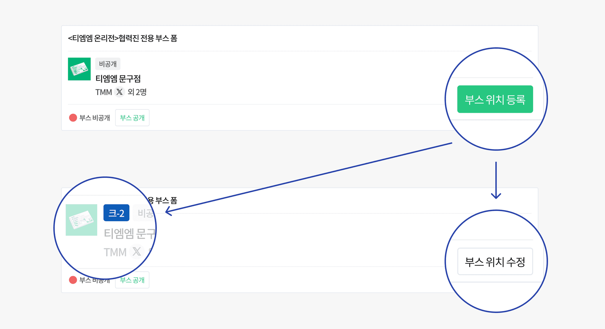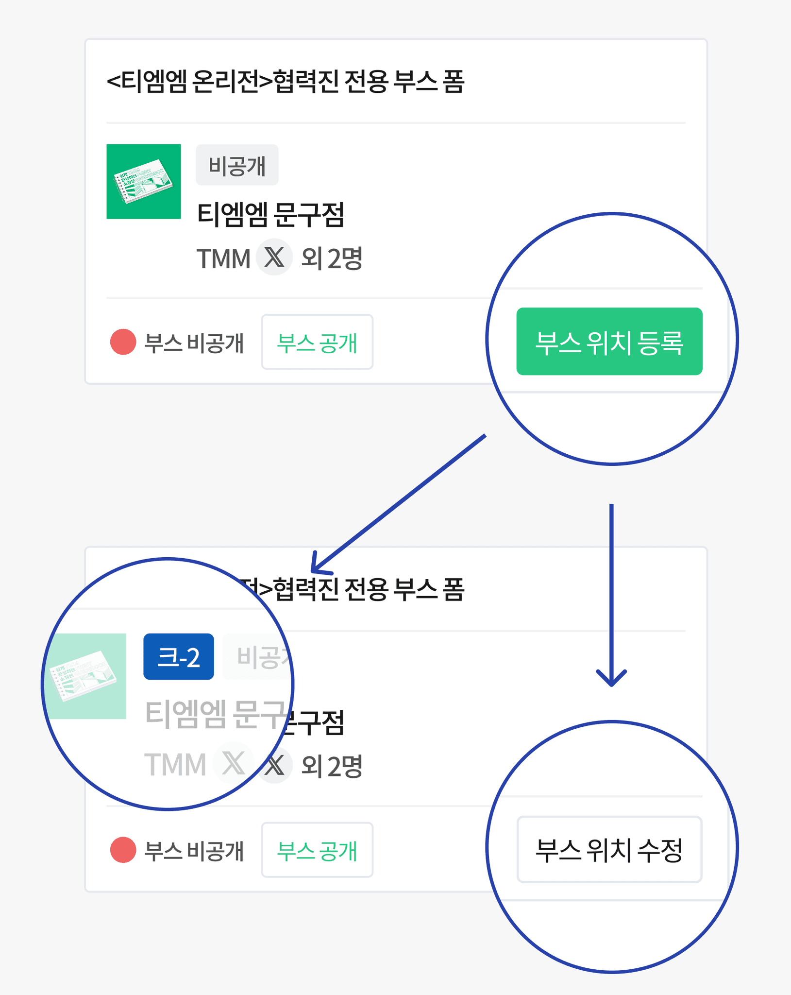 * 공개 상태로 변경되지 않은 부스는 행사 페이지에 보이지 않습니다.
