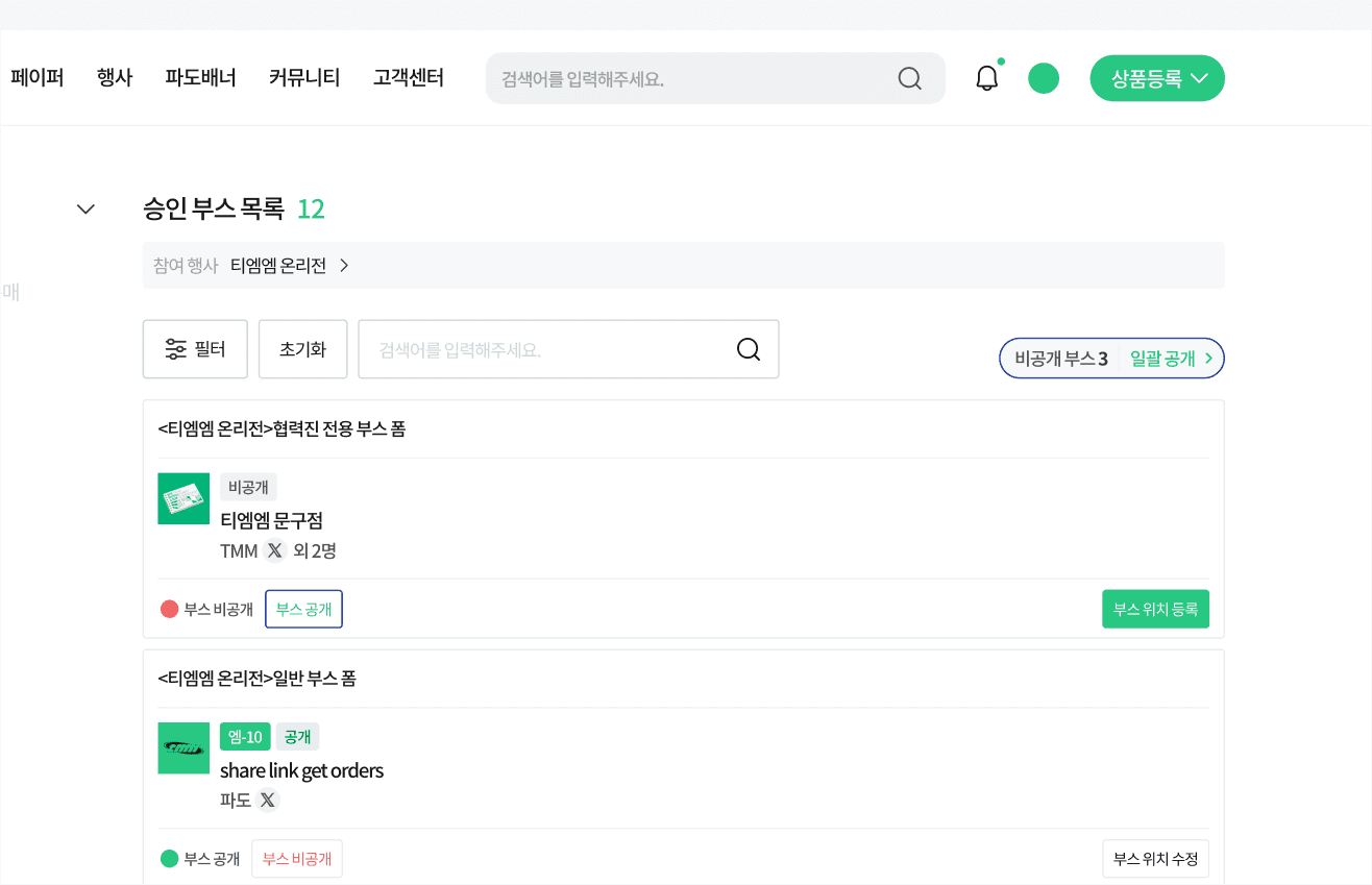 승인 부스 관리 페이지에 접속하여, 부스 공개 여부를 설정해주세요.