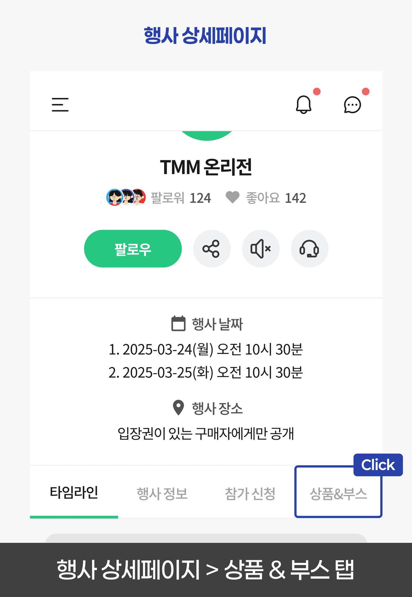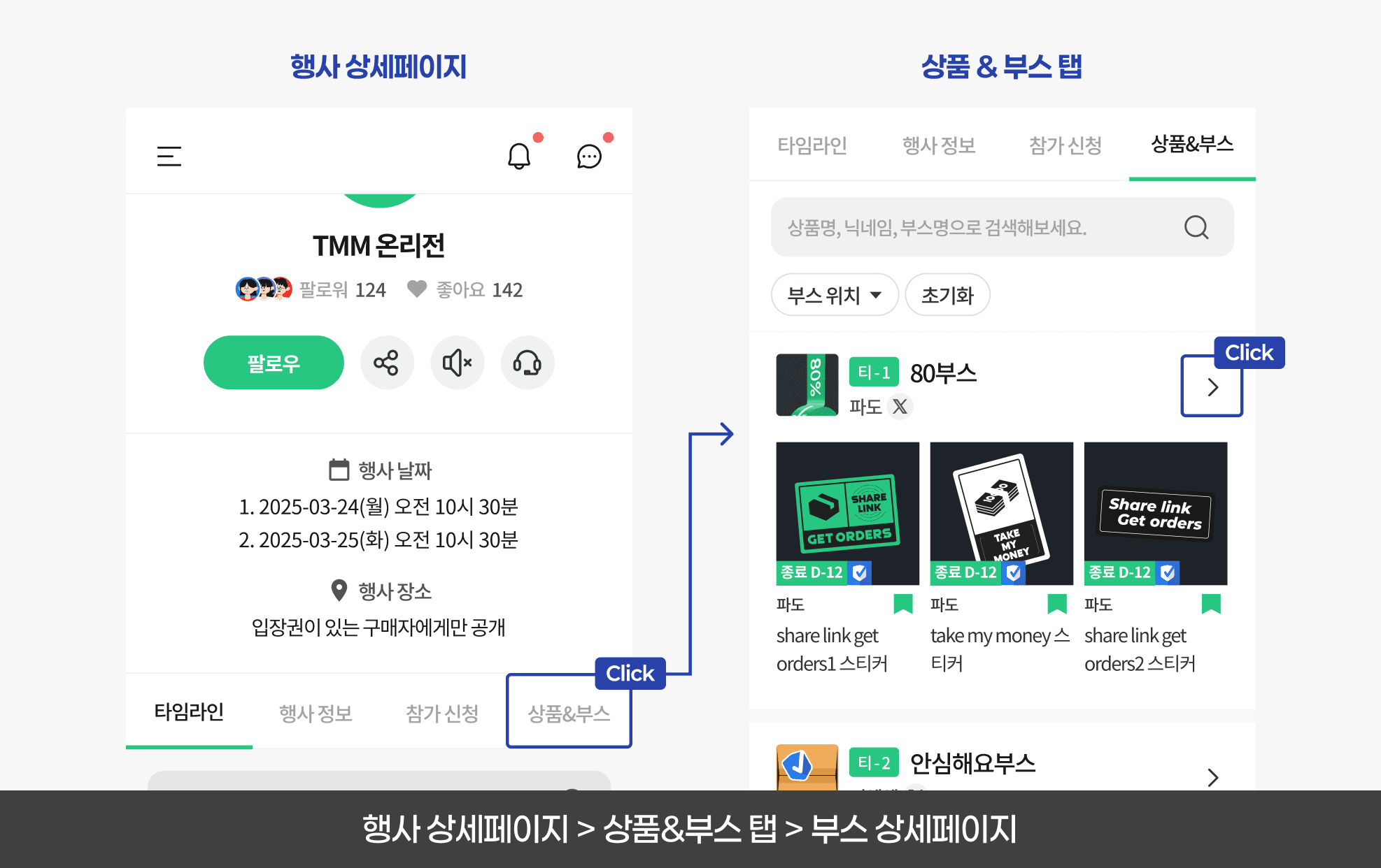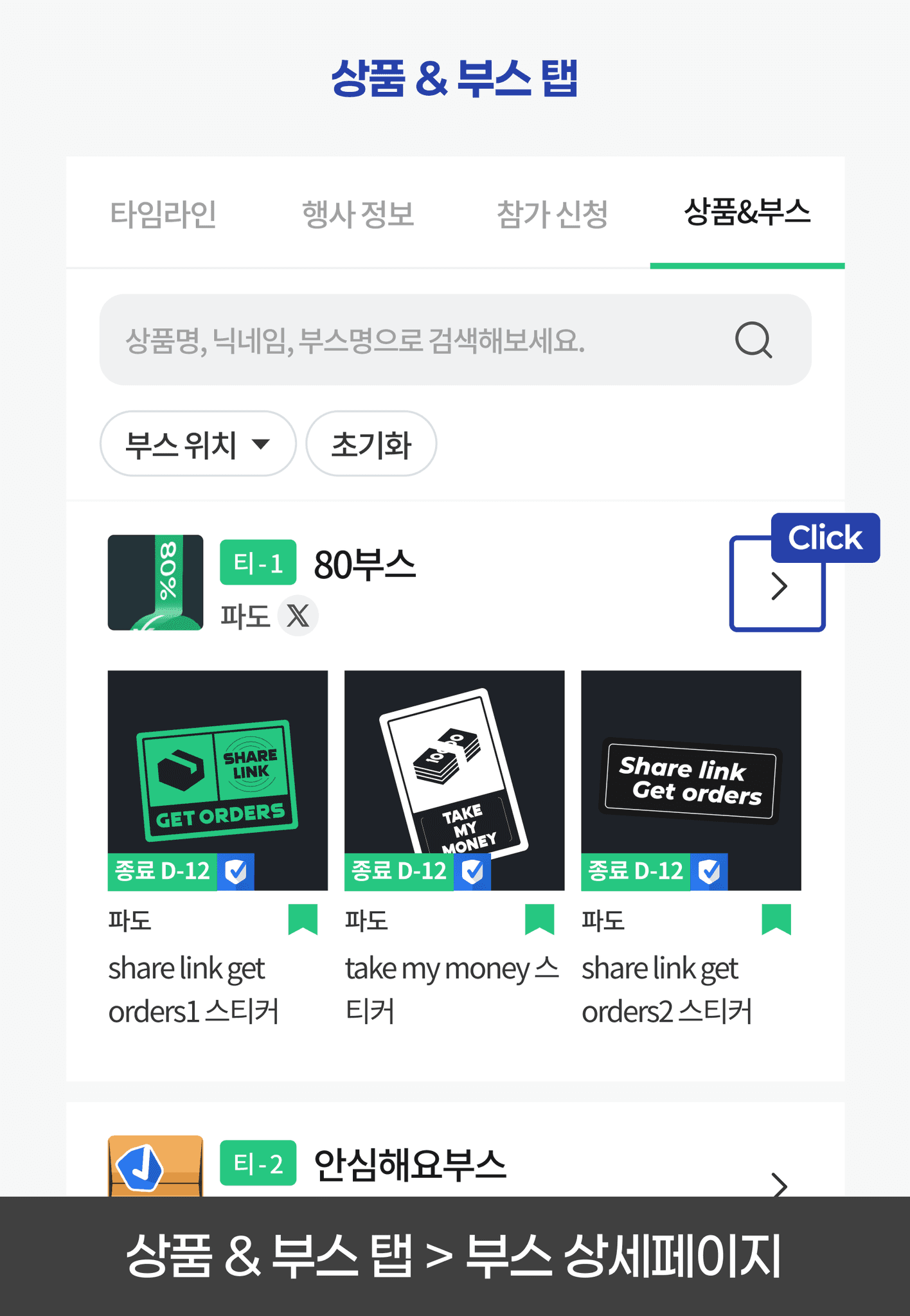 부스에 등록된 상품, 이벤트 등 다양한 정보를 확인해보세요