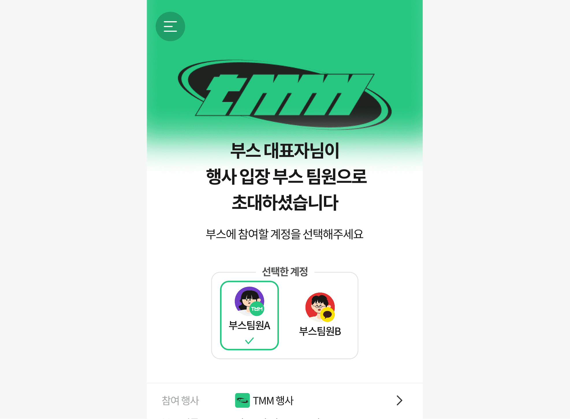부스에 참여할 계정을 선택해주세요.